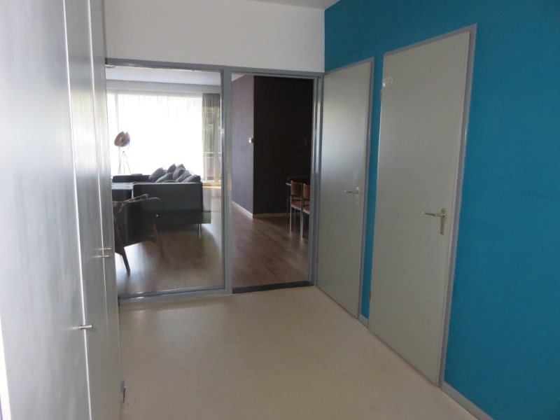 Inkomhal 7m2 4m10 x 1m80: vinyl, ingemaakte kast met vestiaire