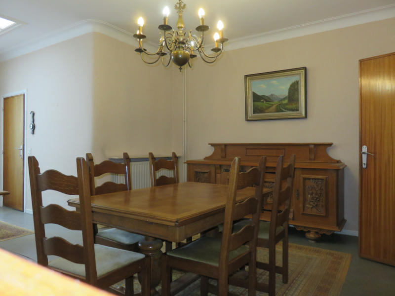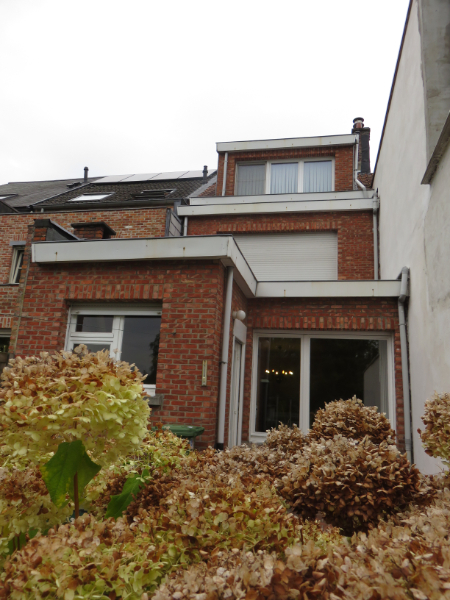 Op de eerste verdieping bevinden zich een overloop, 2 ruime slaapkamers en een klassieke badkamer met zitbad, lavabo en toilet. De tweede verdieping omvat een slaapkamer achteraan en een zolderruimte vooraan, die eenvoudig kan omgevormd worden tot een extra kamer. Verder is er nog een kelder aanwezig met de ketel CV-aardgas en boiler warm water. Ramen zijn al wel grotendeels vernieuwd en voorzien van dubbel glas en bijna overal (elektrische) rolluiken. Vooraan is een oprit met plaats voor 1 wagen.