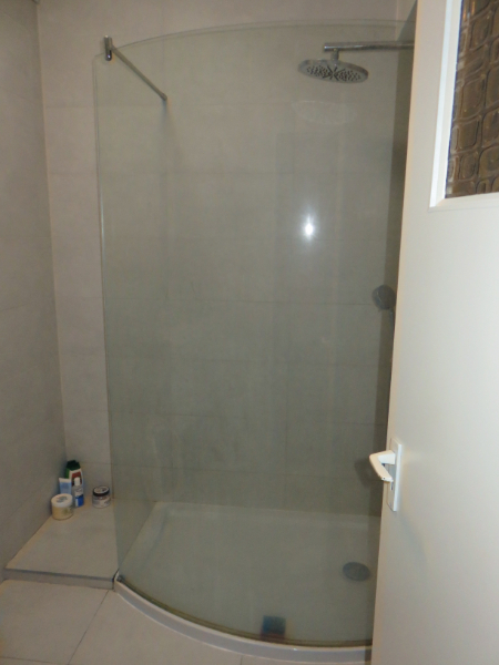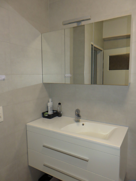 | Badkamer | 5m2 | 2m15 x 2m30: tegelvloer en volledig faience tegen de muren - uitgerust met inloopdouche en modern lavabomeubel |