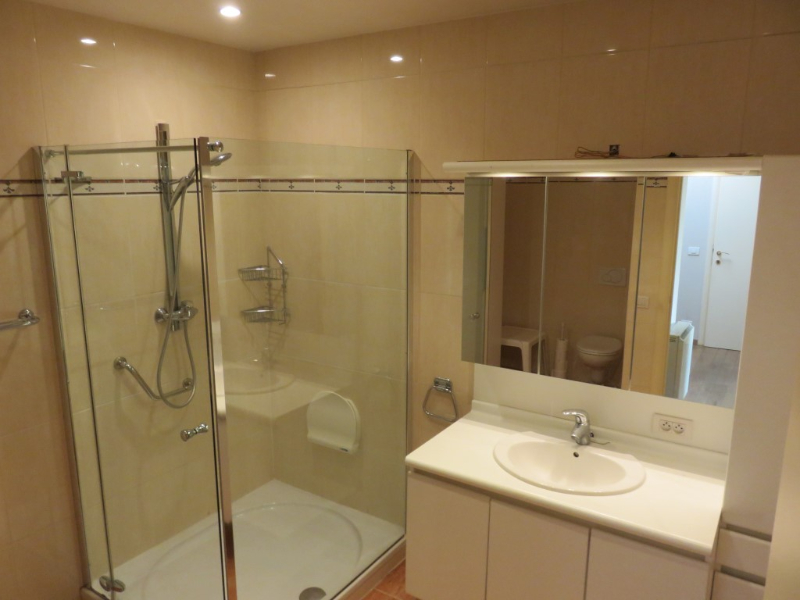 | Badkamer | 8,5m2 | 2m80 x 2m25 + 1m30 x 1m50: vloertegels, volledig faience, dubbel lavabomeubel, inloopdouche, toilet |