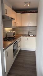 1m50 x 2m50: ingericht met gasfornuis, dampkap, koelkast, spoelbak, CV-ketel |