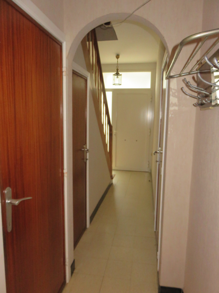 Inkomhal | 6,5m2 | 3m80 x 1m70: originele vloertegels, trap naar 1eV en toegang naar garage |