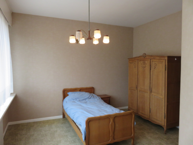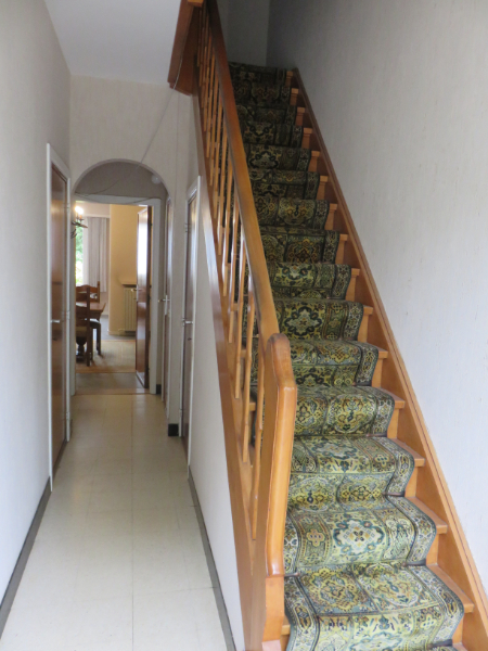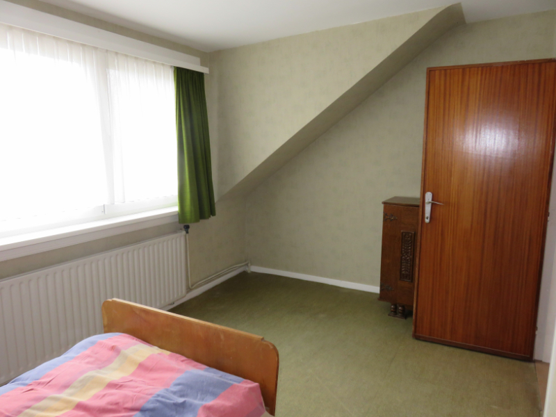 Op de eerste verdieping bevinden zich een overloop, 2 ruime slaapkamers en een klassieke badkamer met zitbad, lavabo en toilet. De tweede verdieping omvat een slaapkamer achteraan en een zolderruimte vooraan, die eenvoudig kan omgevormd worden tot een extra kamer. Verder is er nog een kelder aanwezig met de ketel CV-aardgas en boiler warm water. Ramen zijn al wel grotendeels vernieuwd en voorzien van dubbel glas en bijna overal (elektrische) rolluiken. Vooraan is een oprit met plaats voor 1 wagen.