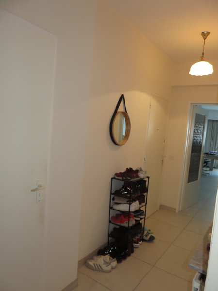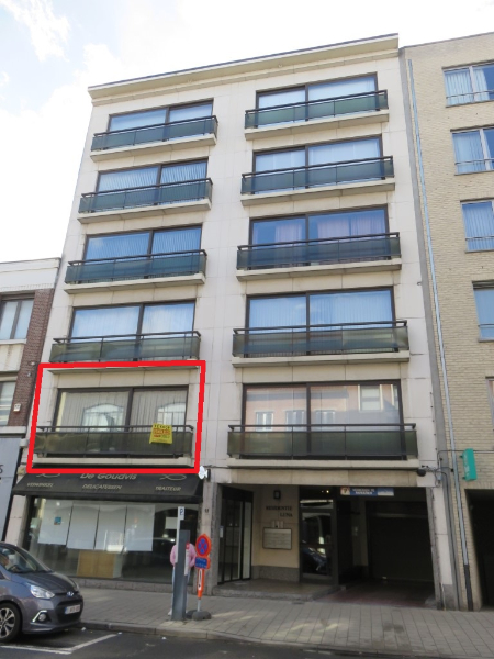 Inkom- en nachthal met apart toilet en kleine berging met plaats voor wasmachine. Ruime woonkamer 38m² aan de straatzijde met klein balkon. Een open keuken van ca 6m² vergroot het ruimtelijke gevoel, modern ingericht en voorzien van alle ingebouwde toestellen. Badkamer is vernieuwd met inloopdouche en lavabomeubel. Achteraan zijn 2 slaapkamers van ca 14 en 10m². Via één van de kamers is toegang naar een zonnig terras 10m² aan de achterzijde van het gebouw. Hier is tevens een bezemkast met ketel CV-aardgas. Gemeenschappelijke kosten gebouw ca 90 euro/mnd. Appartement thans verhuurd. Mogelijkheid tot aankoop overdekte autostaanplaats op gelijkvloerse verdieping gebouw aan 15.000 euro.