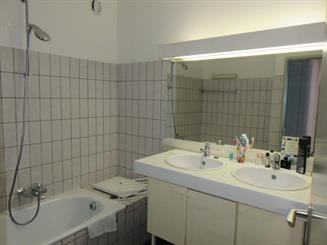 2m x 2m60: vloertegels en deels faience, ligbad en dubbele lavabo |