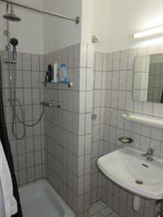 1m60 x 1m60: vloertegels, deels faience, douche en lavabo |